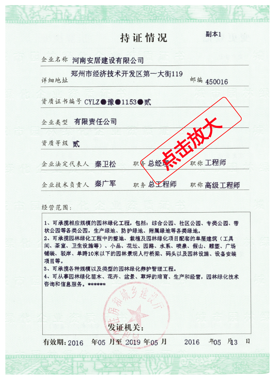 滔滔黃河哺育了中華民族拼搏向上的奮斗精神,巍巍太行造就了中原兒女的紅旗渠精神。百萬林州人下太行,鑄就了中國建筑之鄉響當當的耀眼品牌。河南安居建設有限公司從誕生起血液里就流淌著紅色基因,秉承“安得廣夏千萬間,大庇天下寒士俱歡顏”的擔當精神,用鋼筋混凝土筑起了高樓大廈,也用一流品質、家國情懷打造了安居建設的輝煌成績。公司成立于2012年,注冊資金12600萬元,公司成立至今,擁有建筑,市政施工總承包等十項一級資質;其他二級等資質共二十余項。公司秉承質量第一,服務為主,堅持垂直管理,從不設立分公司等分支機構。